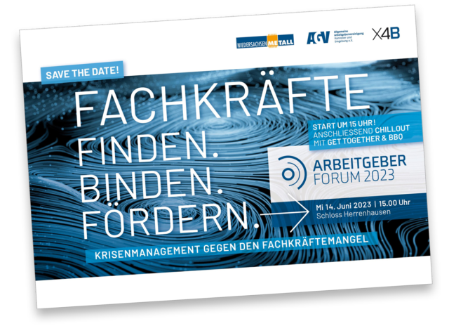 „Fachkräfte finden. Binden. Fördern. – Krisenmanagement gegen den Fachkräftemangel“ ist deshalb auch das Oberthema unseres diesjährigen Arbeitgeberforums am Mittwoch, 14. Juni 2023 ab 15 Uhr im Schloss Herrenhausen. Seien Sie dabei und diskutieren Sie mit!